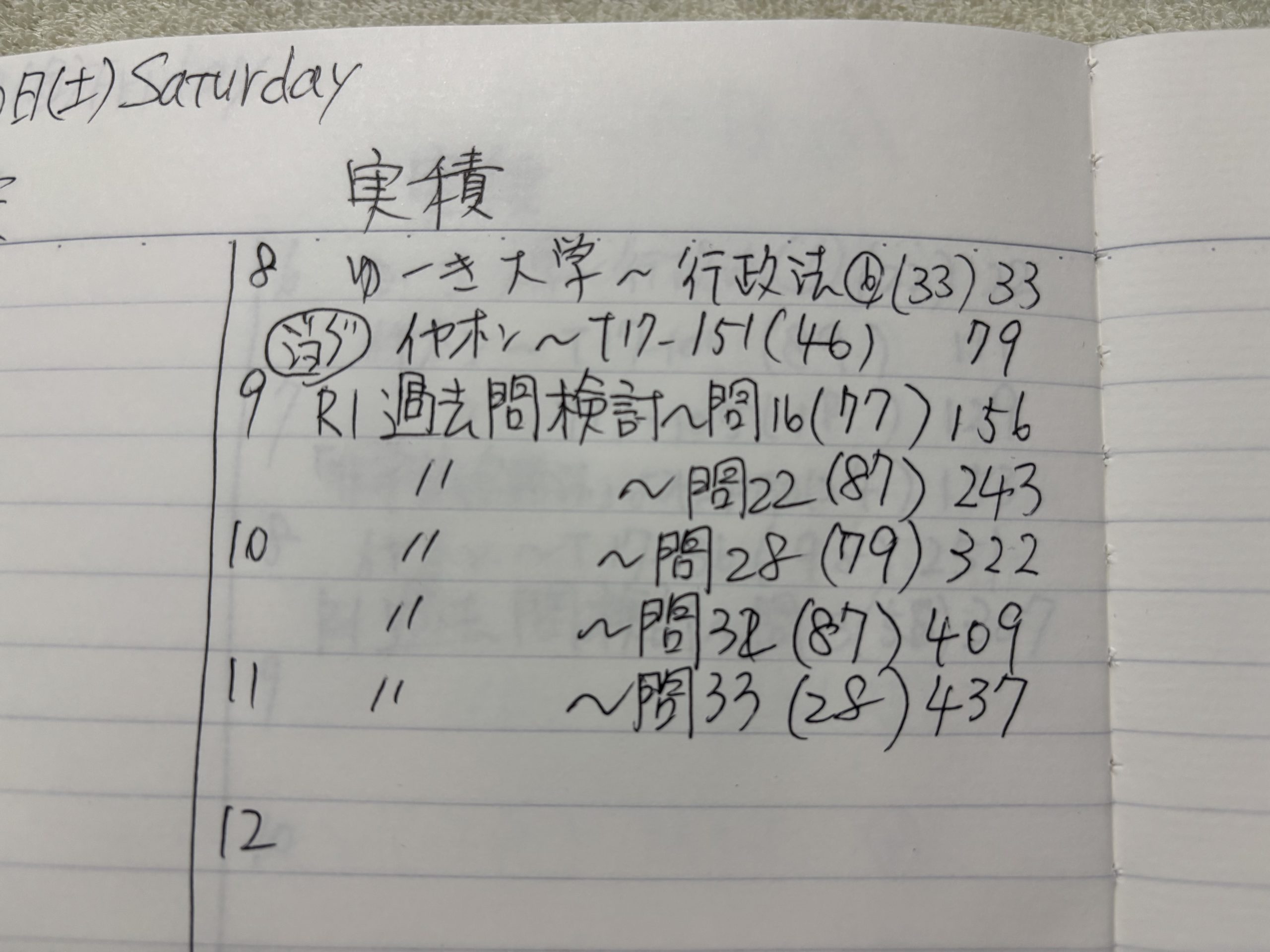 断酒8日目/300日 #行政書士 #試験 #勉強 #受験 #R8 #令和8年 #法律 #法学 #憲法 #民法 #行政法 #司法試験 投稿ナビゲーション 1/9(金)307分1/11(日)593分H30本試験問154〜182/300点