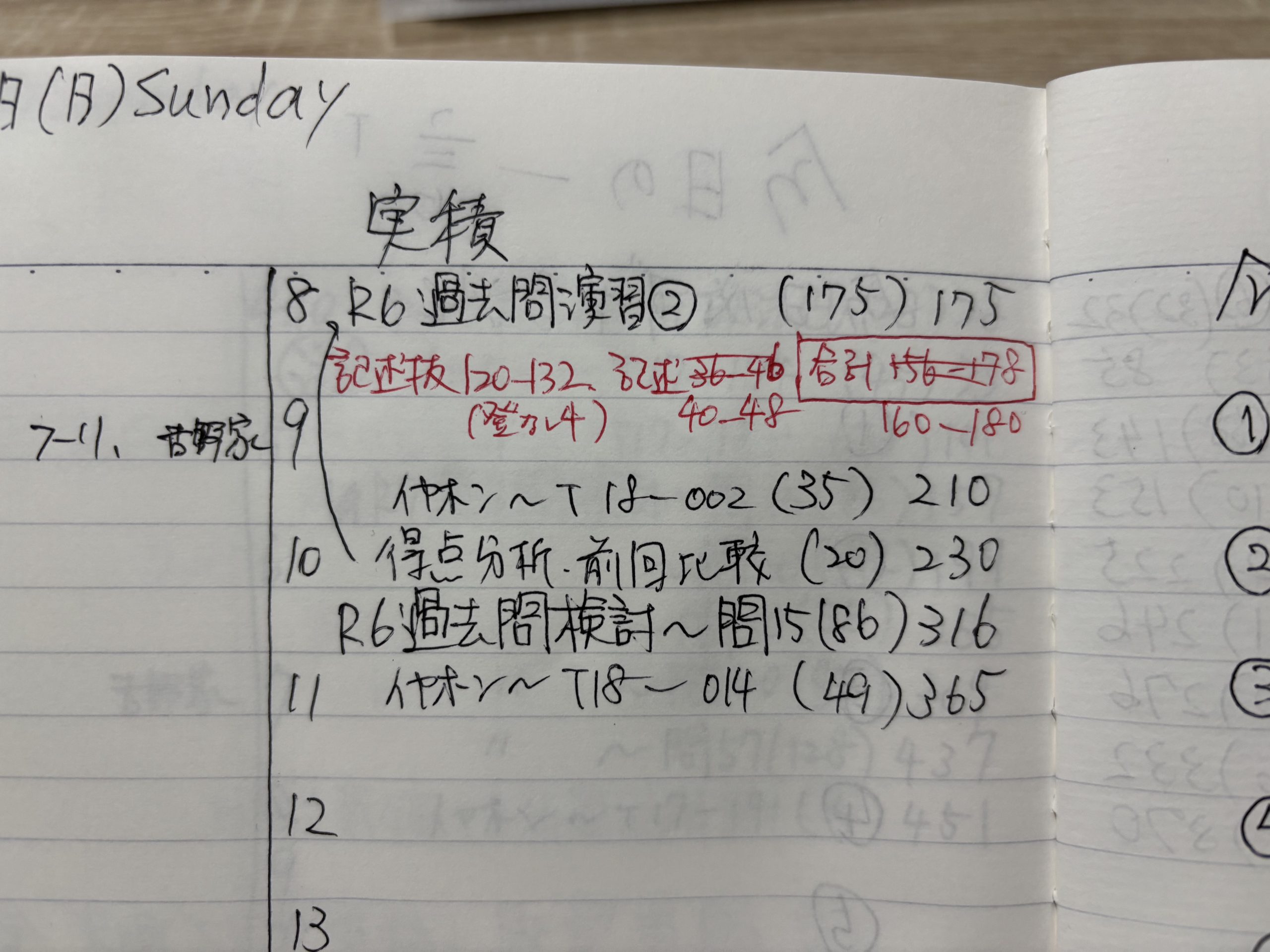 土日の9時間勉強がシンドクなってきた。現状、平日6時間×5日=30時間+土日18時間の週48時間作戦なんだけど、毎日7時間=週49時間の方が体感的には楽なんじゃないか、という気がしてきた。明日から試してみよう。