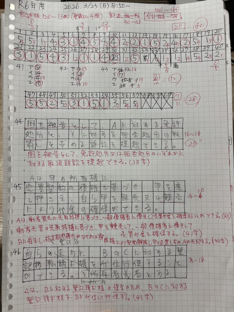 行政法8→12問正答に増えたのは成長が感じられてよい。基礎法学1→0、会社法2→0に減ったのは「勘で当ててた部分が浮き彫りになっただけ」なので、ここも伸びしろと考えたい。てか、合格率高めの年と相性悪いの何でだろう。予備校使っている人との差なのだろうか。