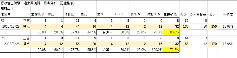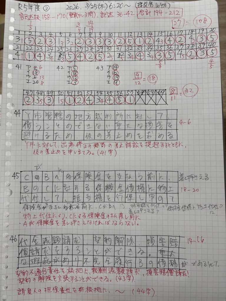かなり目標に近い形で得点できた。行政法で+2問、民法で+1問、憲法で+1問、計4問正当を上乗せしたい。朝4時起きで即勉強開始すると、9:30〜18:00在宅勤務しつつ、18:00の時点で、7時間勉強を終えられた。酒は飲みたい。