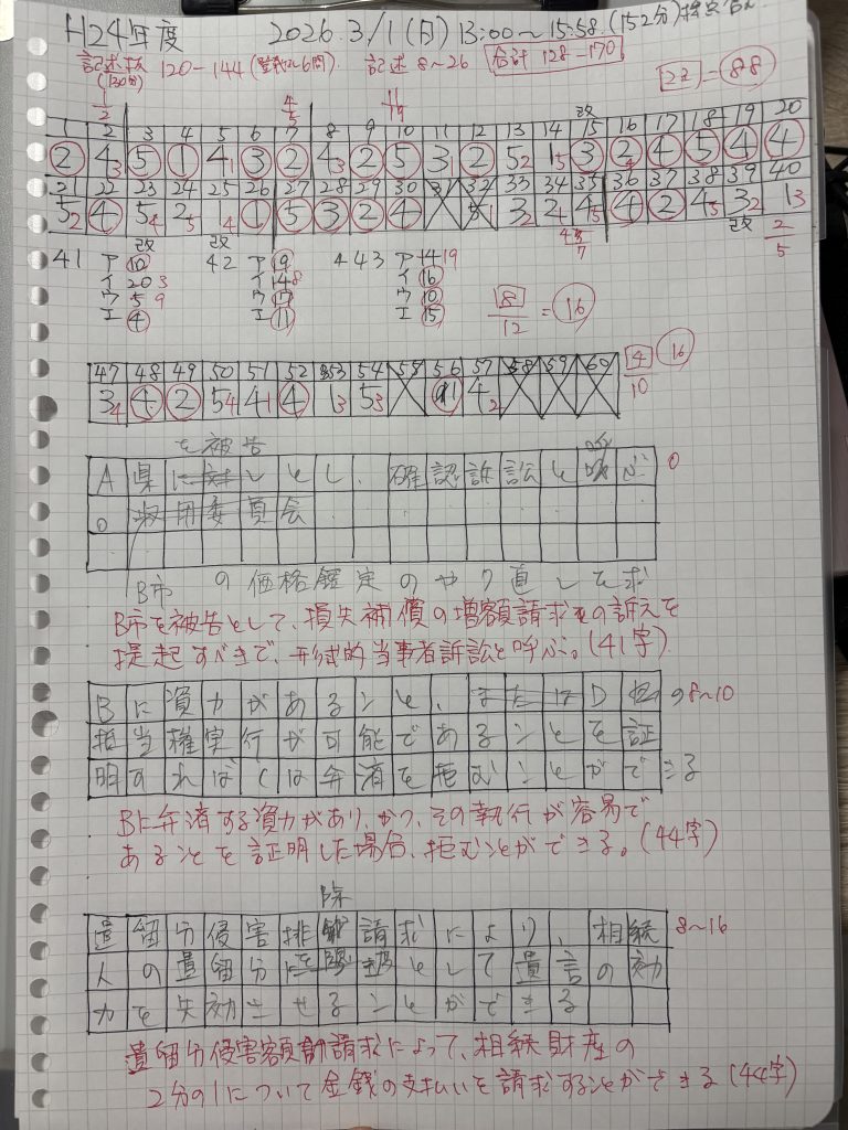 行政法であと5問(20点)、民法で1問(4点)、商法で2問(8点)、多肢選択で1問(2点)、基礎知識で2問(8点)の計42点を上乗せして記述抜き180点超えを目指したい。疲れたから酒飲んで寝る。