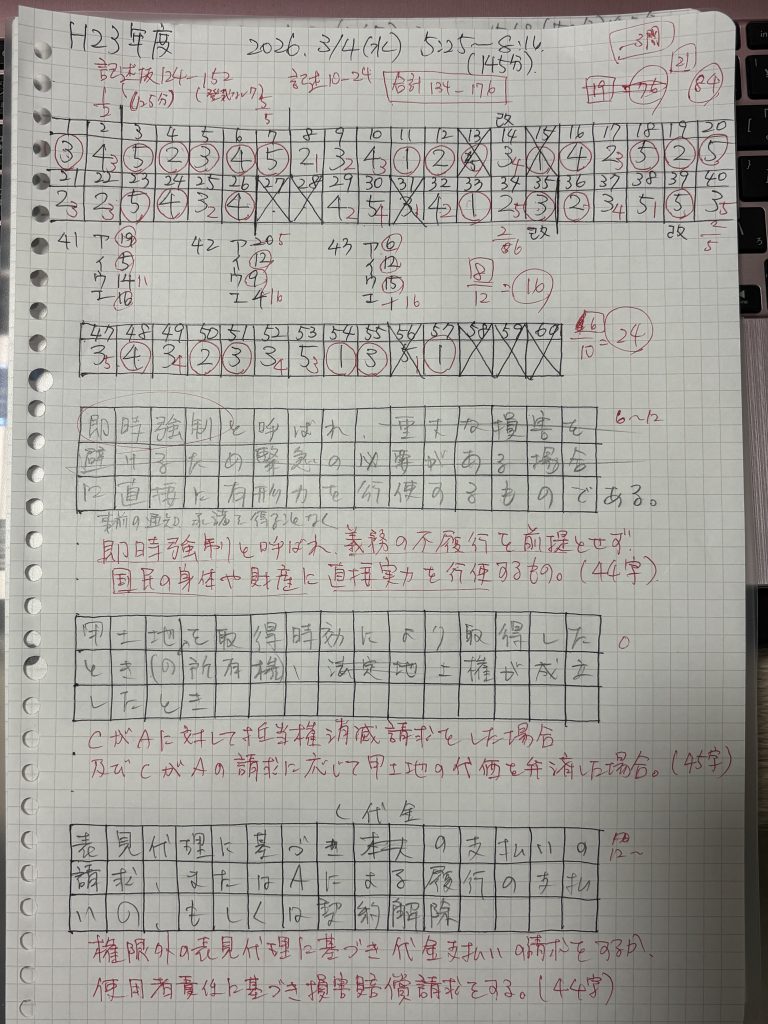まだまだ民法と行政法の基礎が弱いけれども、全体的にみて勉強法自体は間違っていないと思う。