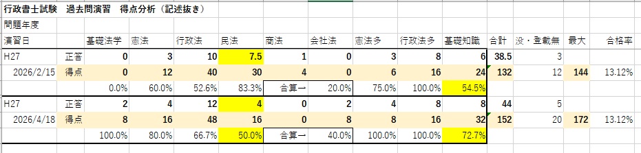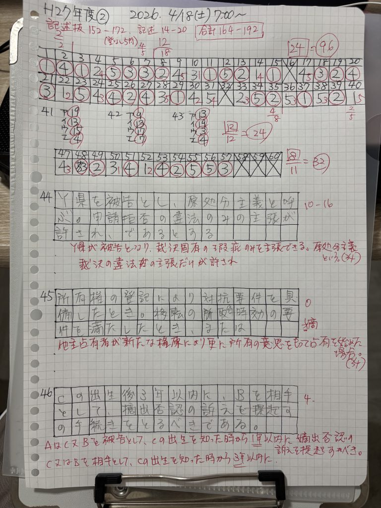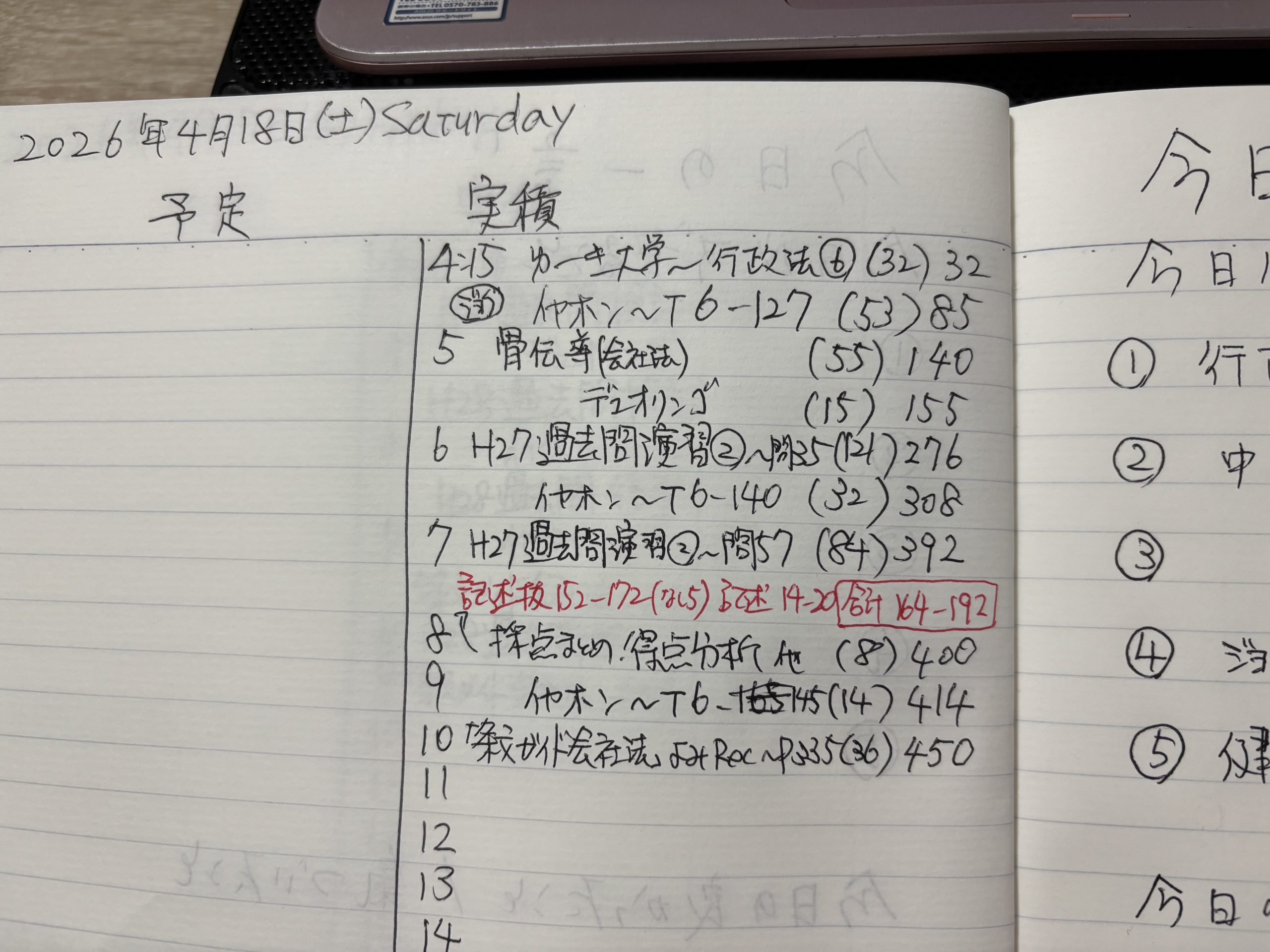 4/18(土)行政書士試験勉強450分(7時間30分)